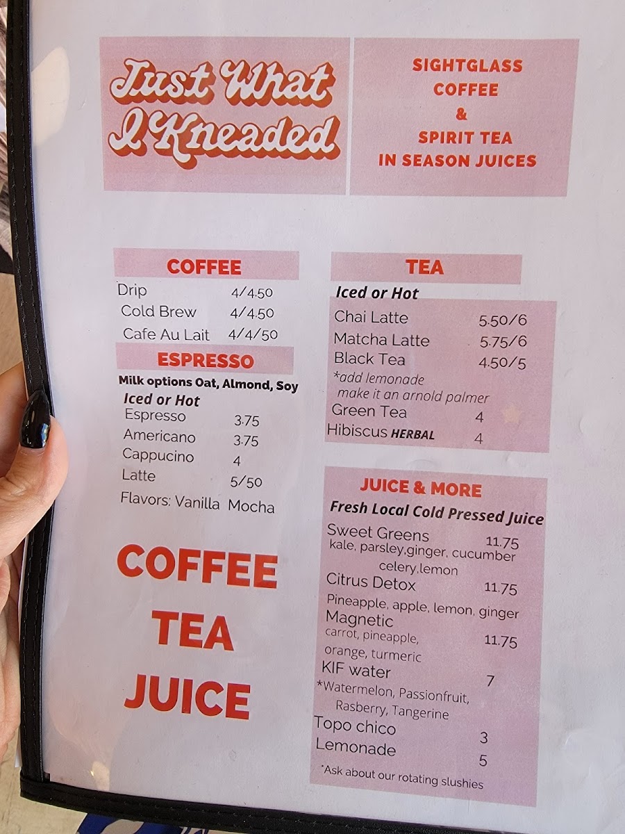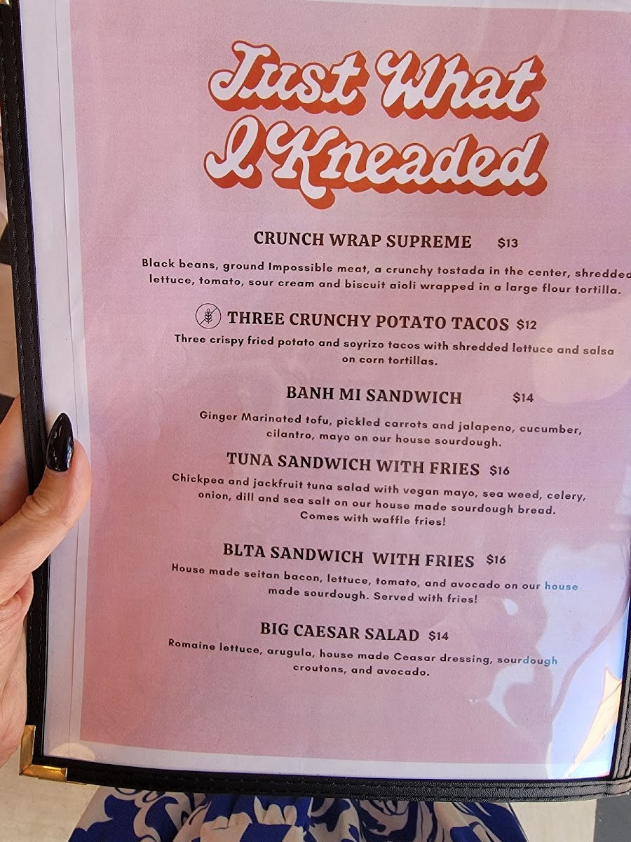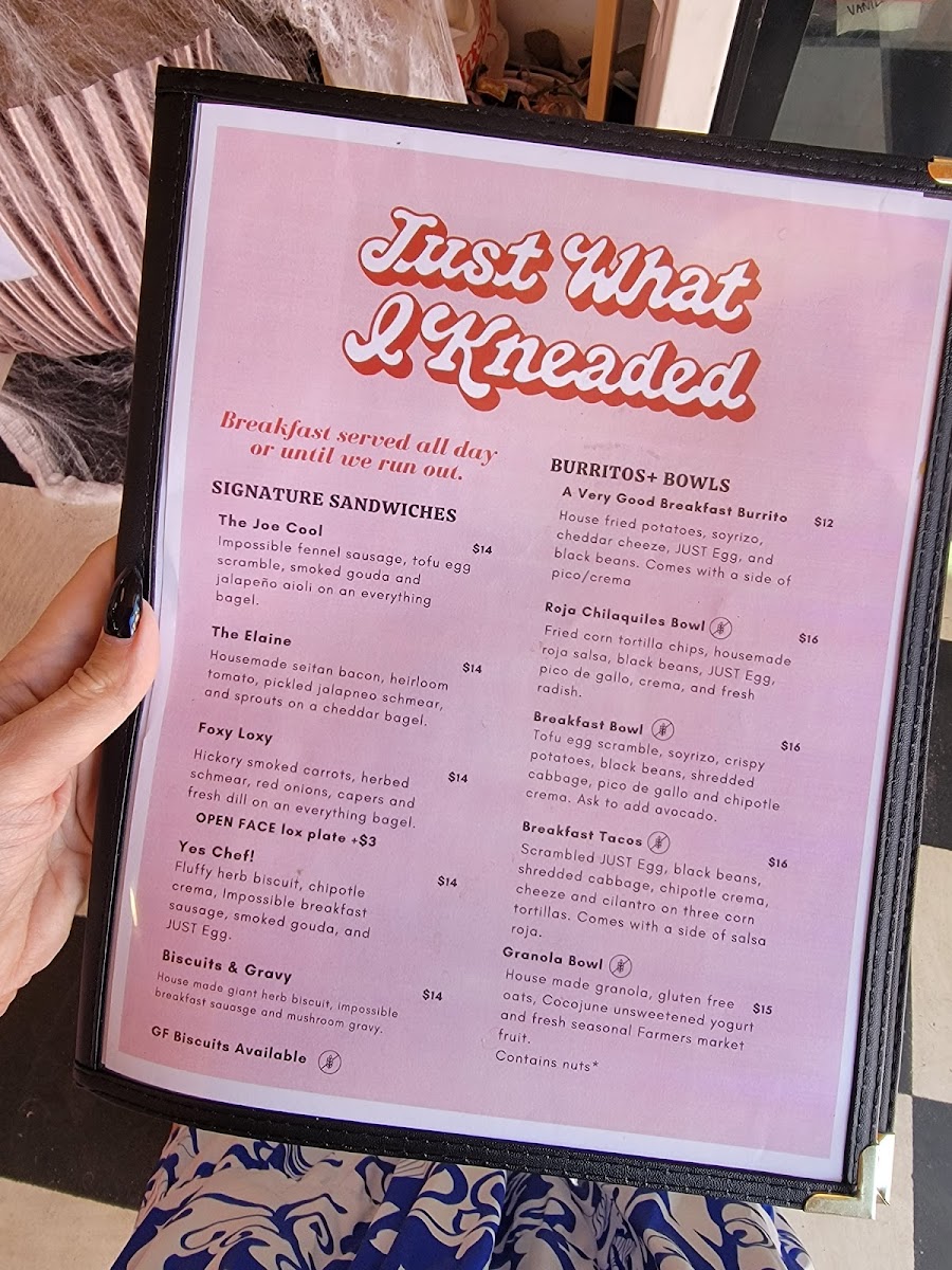 Just What I Kneaded Menu