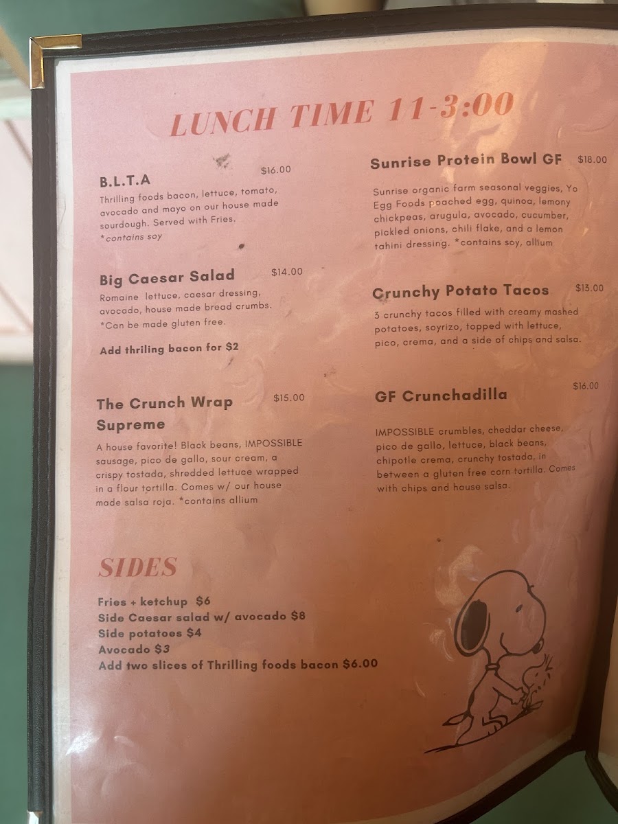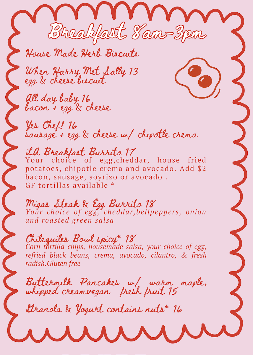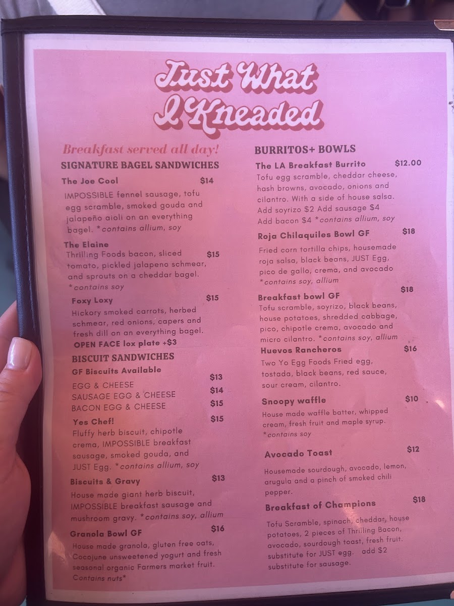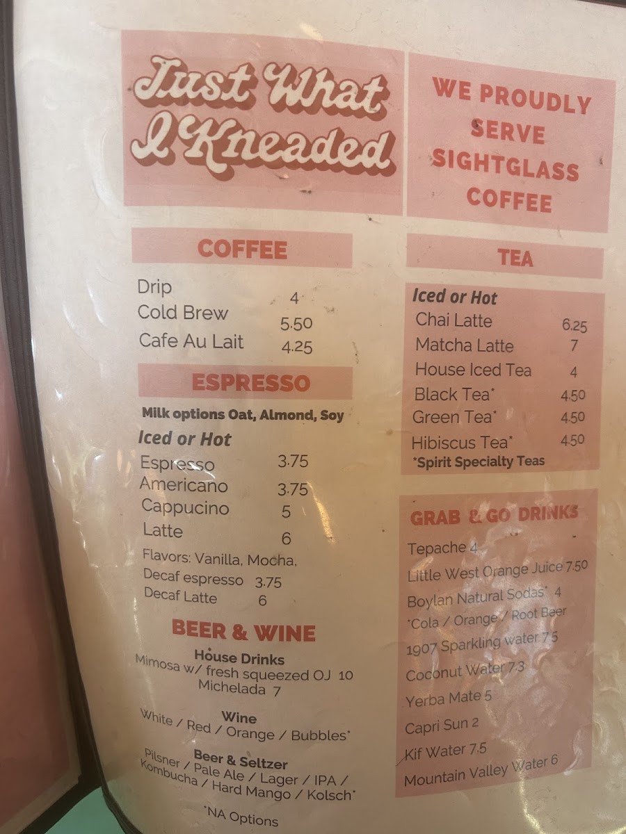 Just What I Kneaded Menu
